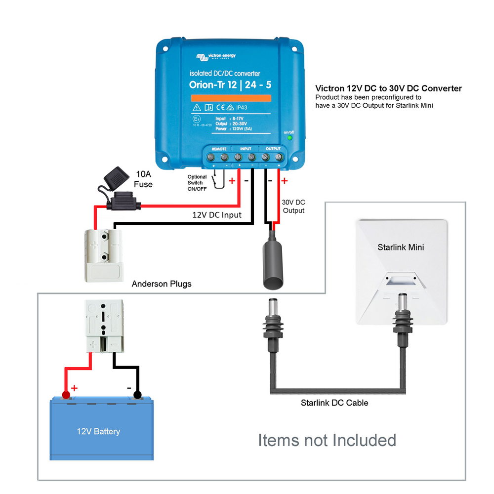 Victron Starlink Mini 12V to 30V DC Step-Up Converter Power Supply via Anderson Plug